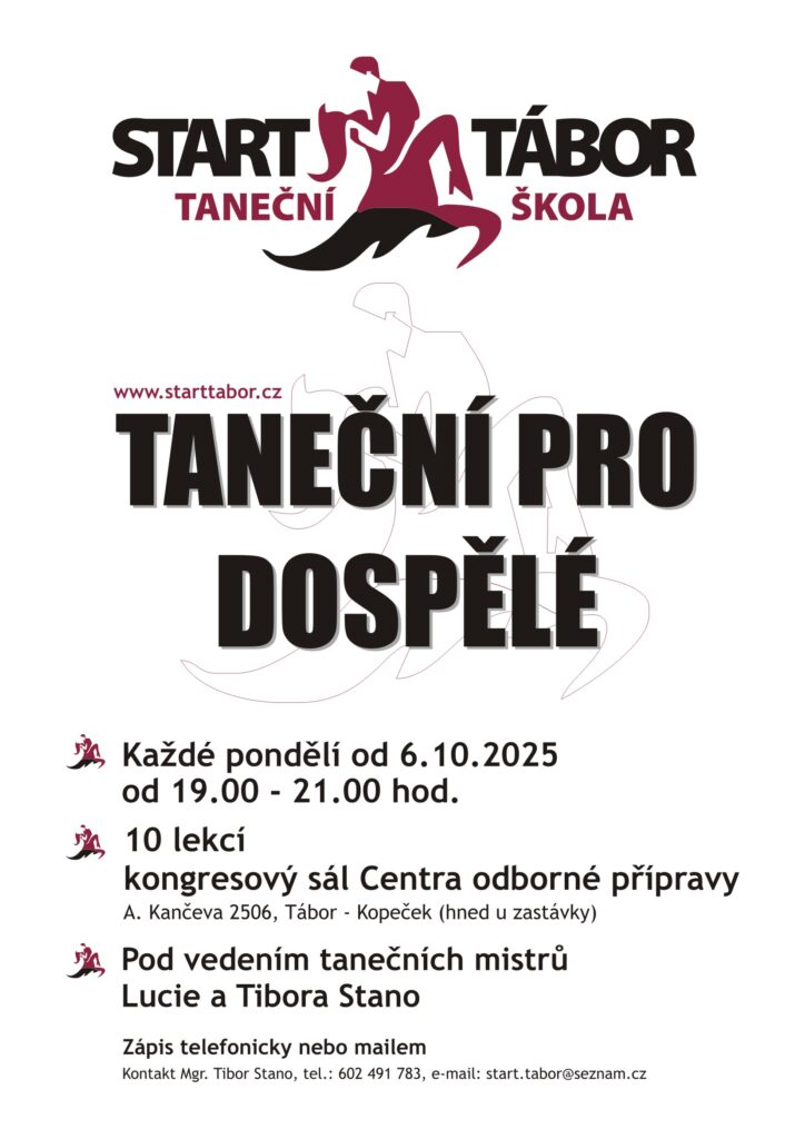 Toto soustředění je určeno začínajícím tanečním párům, ale i JEDNOTLIVCŮM. Naučíte se zde základní kroky standardních i latinskoamerických tanců, získáte pružnost i vytrvalost.